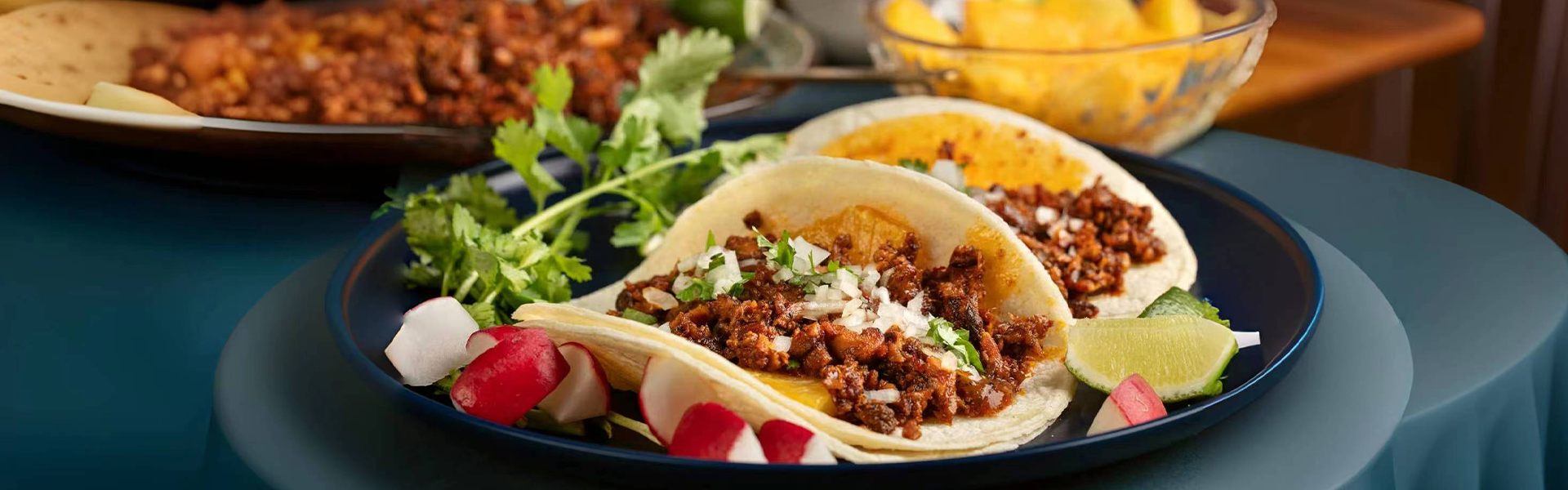 FOR SERVING10 small corn tortillas 1 white onion, finely chopped 1 cup fresh cilantro(40 g), finely chopped 1 cup salsa(260 g) 1 avocado, diced 2 limes, cut into wedges