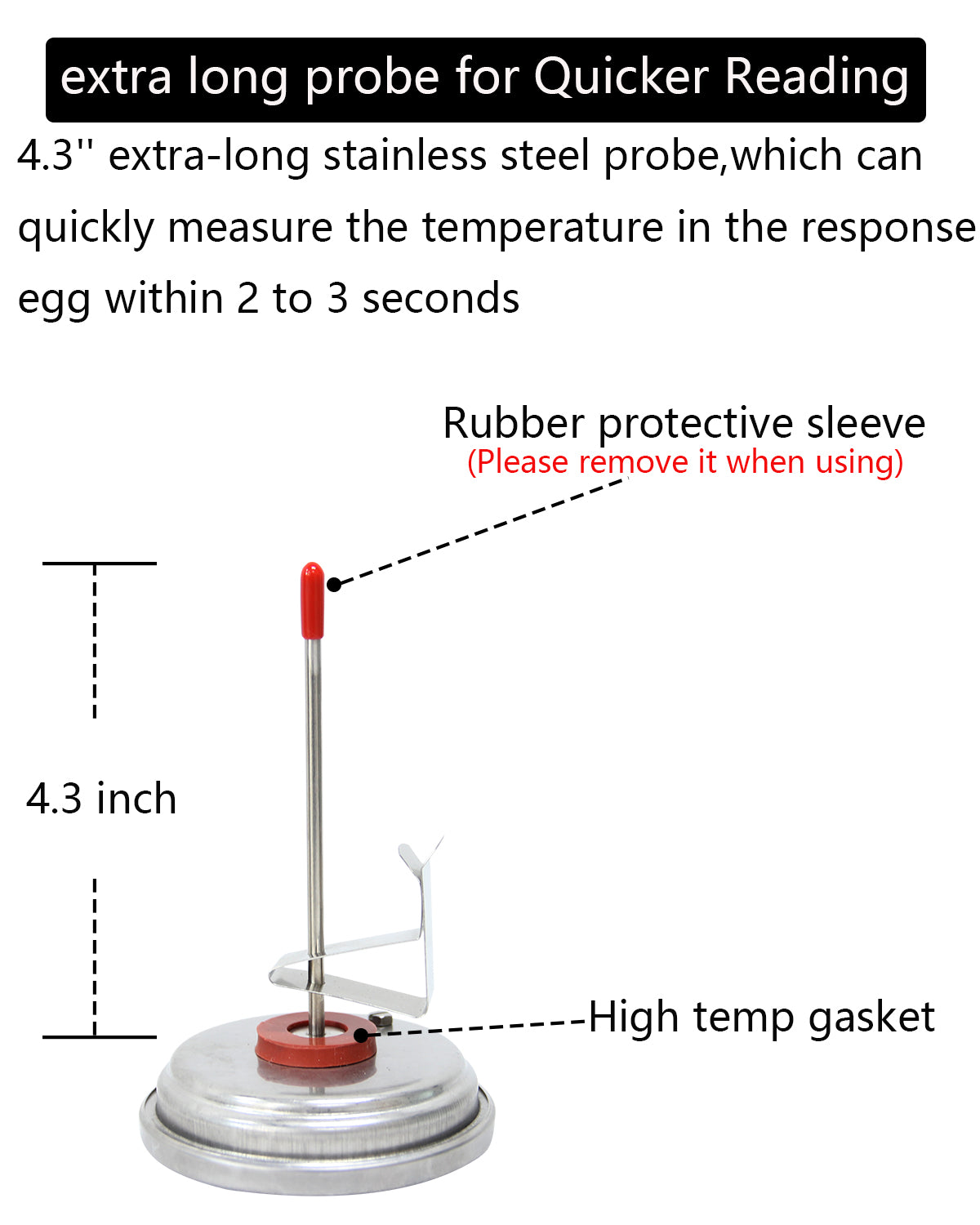 - 【Extremely Accurate Readings】Our big green egg parts thermometer of BGE has extra long stainless steel probe rod for accurate temperature readings and precisely measures internal temperatures of food with a quick 3 to 4 second response time.[If you receive a thermometer with any quality problems or inaccurate readings,please feel free to contact us,we will resend you a new thermometer for free].
