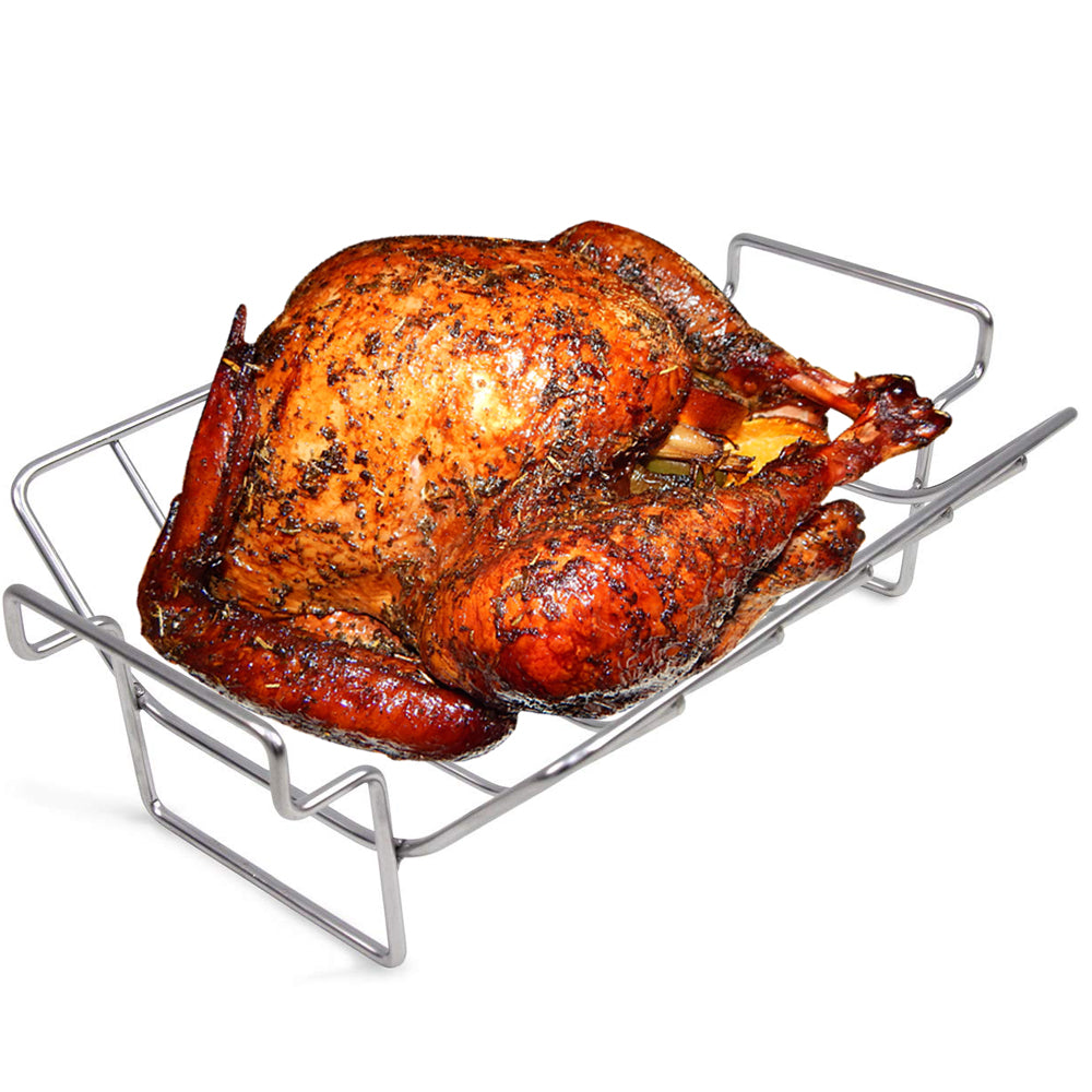 - 【2 in 1 Design Turkey Rack】This BBQ V rack's unique 2 in 1 Design Gets The Job Done Without Needing Multiple Accesssories;can be used 1 side for the medium turkey and you can flip it over and utilize the other side for doing ribs!you will be able to make ribs, a whole chicken, pork tenderloin, prime rib, and so much more, all with just this rack!